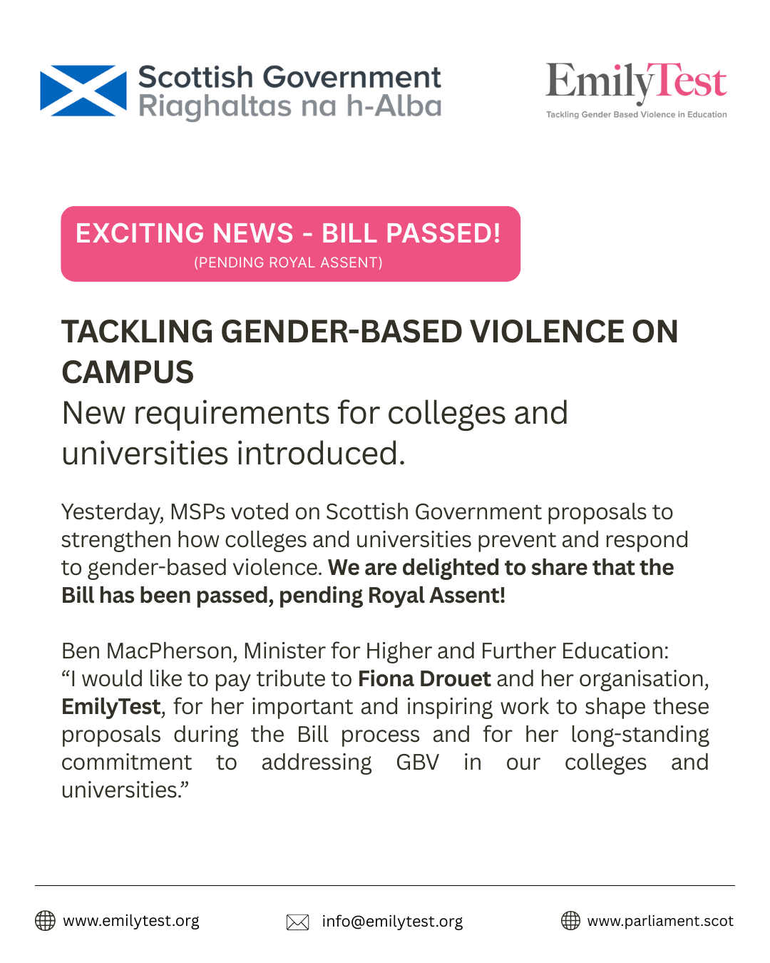 Thank you to the Scottish Government, Ben Macpherson and Pam Gosal for your support - this truly is life changing legislation.